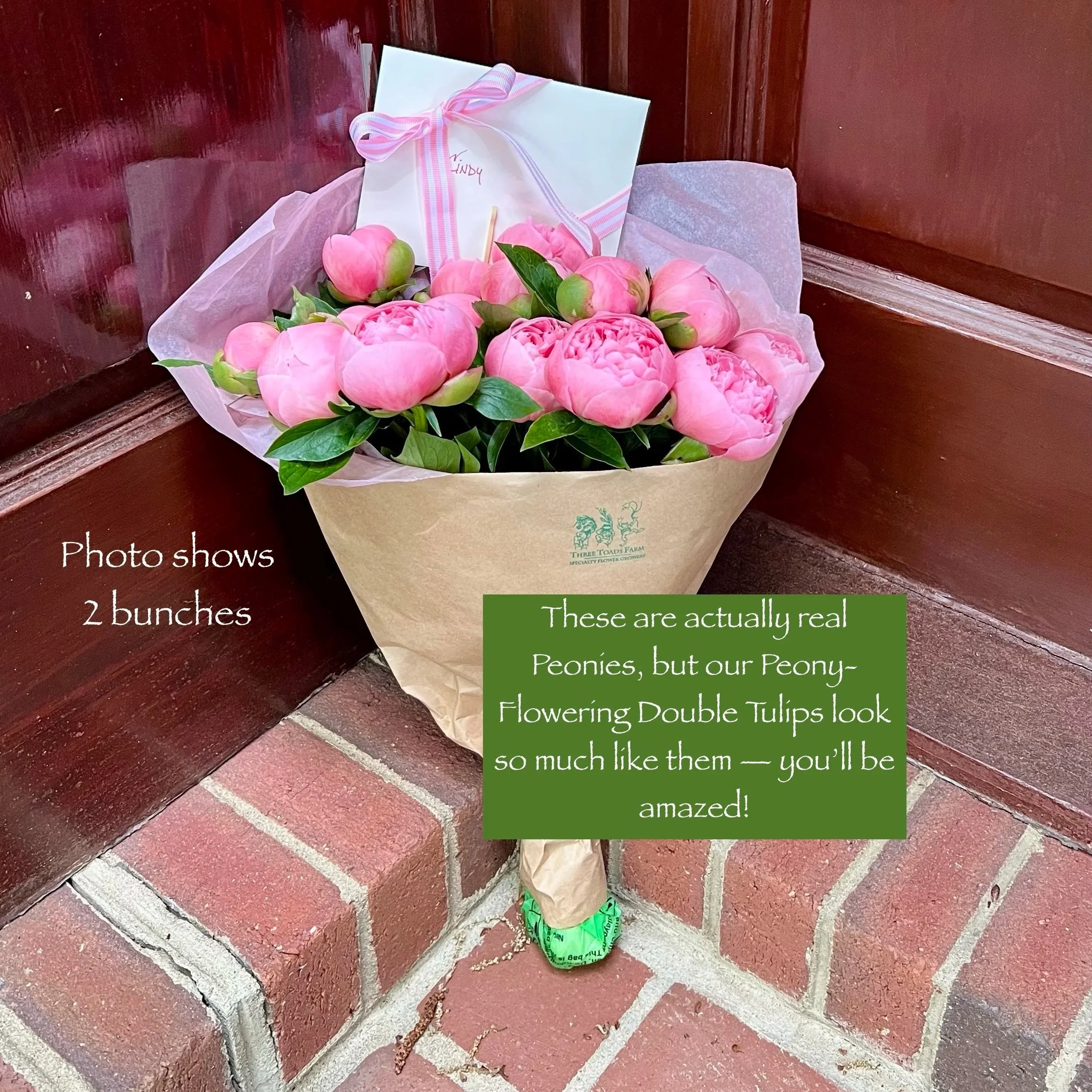 NOTHING is fresher, longer lasting or more local than our glorious peony-style double tulips, with their layers & LAYERS of saturated colors. The PERFECT healthy & sustainable alternative to imported roses that are sprayed, dipped or drenched in chemicals before they begin their long journey to the U.S.